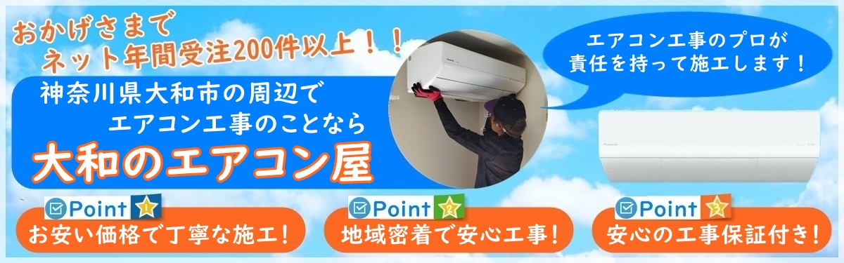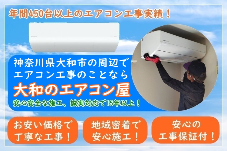 大和のエアコン屋は家庭用のエアコン工事を主にエアコン取り付け・取り外し工事をおこなっている地域密着のエアコン業者で、大和市を中心に神奈川県で活動しております。